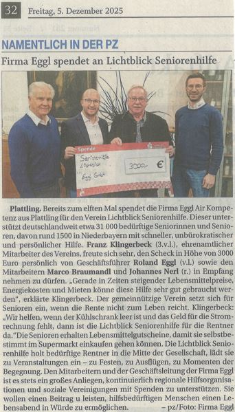 Jährliche Spende an Lichtblick Seniorenhilfe