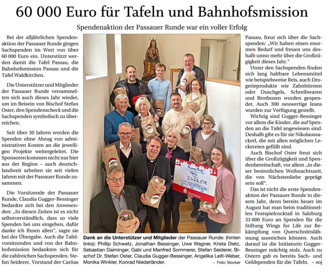 Spende an Passer Runde zugunsten der TAFEL in Passau – 2022 – 2025